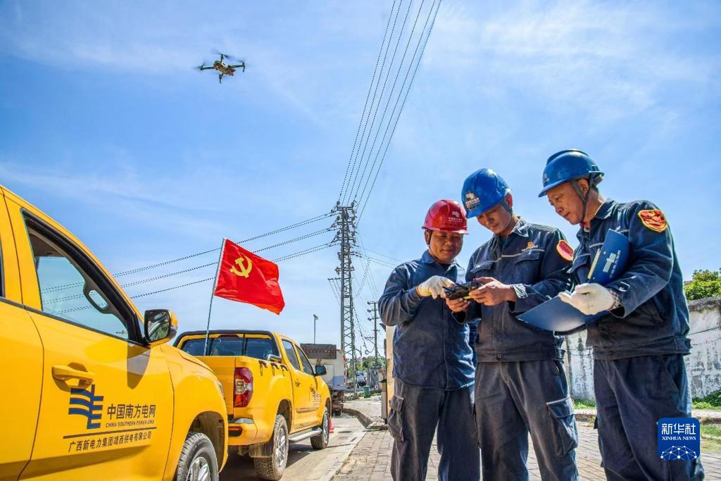 图为南方电网广西新电力集团靖西供电公司党员服务队用无人机对重点线路进行巡视。骆衍利 摄