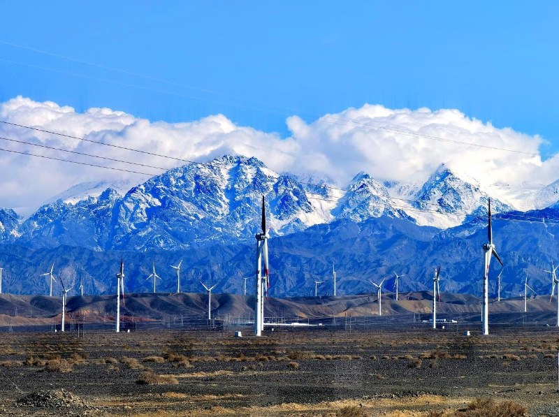 在新疆,“三山夹两盆”的特殊地形造就了“十大风区”,其中,吐鲁番小草湖风区作为我国少有的超一类风区,历史极大风速超过50米/秒。因为常年刮大风,这里被称为“魔鬼风区”,当地人谈“风”色变,可在中国华能的建设者们看来,有风的地方就有电。2008年,中国华能在这里播种下首颗绿电兴疆的“种子”——华能吐鲁番白杨河风电场一期项目开工建设。