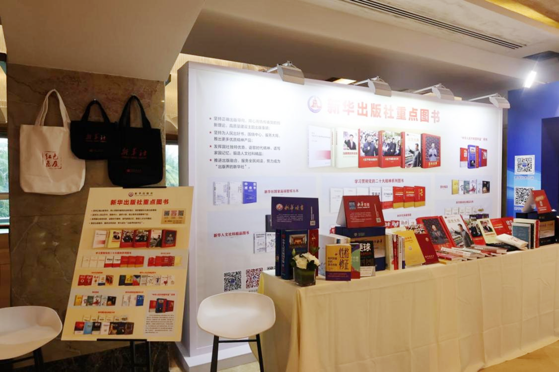 新华出版社作为本届论坛协办单位,首次在论坛举办期间设立图书展区,全方位展示新华出版社百余种精品图书与期刊,包括《习近平的扶贫足迹》《习近平的小康情怀》《盛世大典:隆重庆祝中华人民共和国成立70周年》《百年庆典:隆重庆祝中国共产党成立100周年(1921-2021)》《习近平经济思想的生动实践述评》《新华通讯社90年90篇精品选》《国家相册:因为我相信》等一大批围绕新华社精品报道资源,特别是核心报道深度开发的主题出版精品图书,现场展出了新华版“学习贯彻党的二十大精神”系列、“中华人民共和国年鉴”系列、“新华社国家高端智库”系列、新华人文社科精品图书、新华国际政治精品文库、“党史学习参考”系列、“向时代英雄致敬”系列等重点图书。