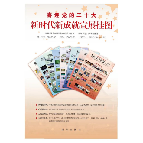 本挂图是展示十八大以来十年伟大成就的主题宣展类挂图,共分为八个部分,分别为“全面从严治党:一场伟大的自我革命”“奋进新征程:奏响高质量发展最强音”“科技强国:打造创新发展新高地”“美好生活:一曲民生与文化的交响”“美丽中国:绘就生态文明新画卷”“军强才能国安:吹响新时代强军号角”“美美与共:奏响人类命运共同体新乐章”“建功新时代:向所有的平凡英雄致敬”。每部分精选收录20余幅新华社公开播发的新闻图片,以挂图的形式分主题展现了新时代以来党带领人民取得的伟大成就,可供各级企事业单位、学校张贴学习使用。