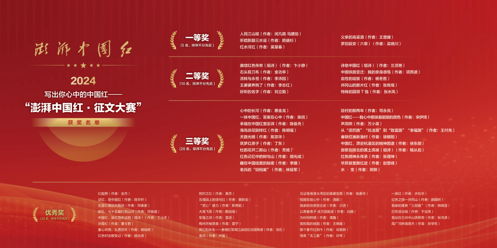 马胜荣代表“澎湃中国红·征文大赛”评审委员会介绍了征文评审情况并发布征文大赛获奖名单。