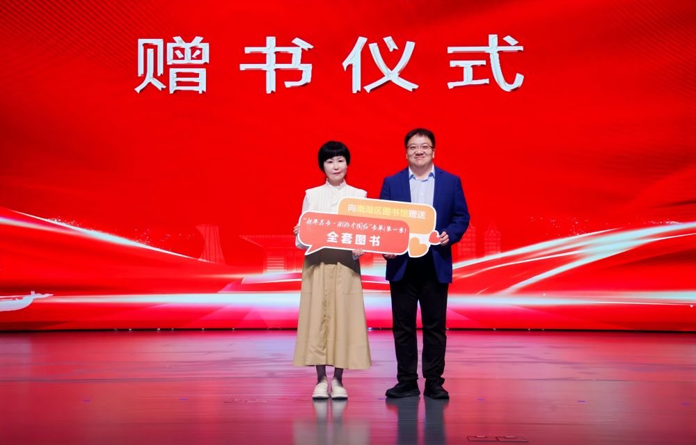 活动现场,匡乐成代表入选图书单位向南湖区图书馆赠送“新华荐书·澎湃中国红”书单(第一季)中的全套图书。南湖图书馆将开辟专题展陈。