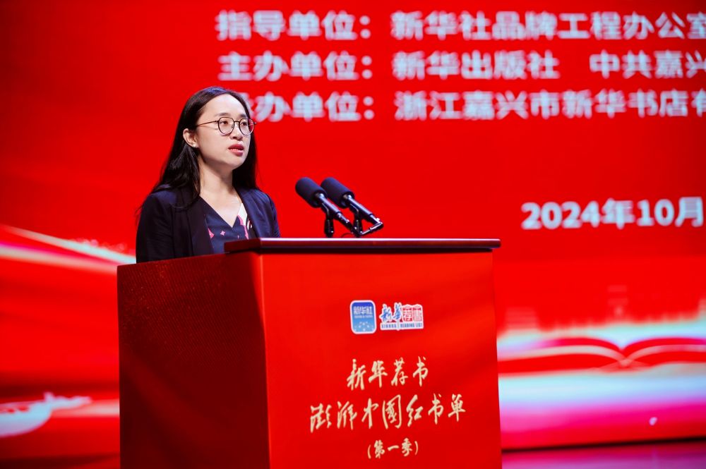 10月16日,“新华荐书·澎湃中国红”书单(第一季)发布会在浙江省嘉兴市南湖区举行。活动由新华社品牌工作办公室、韬奋基金会指导,新华出版社、嘉兴市南湖区委宣传部主办,嘉兴市新华书店承办。