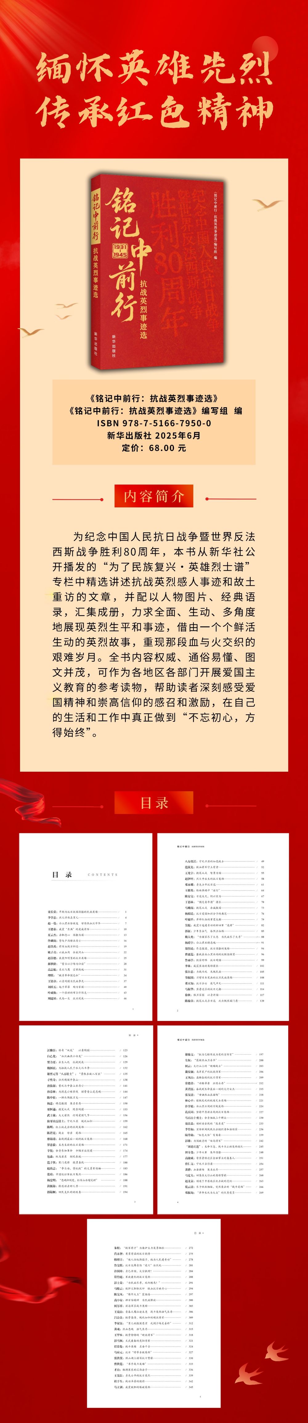 由新华出版社出版的《铭记中前行:抗战英烈事迹选》一书自6月推出以来,以生动丰富的历史细节、感人至深的先烈故事受到读者广泛关注。近日,该书入选中国出版传媒商报2025年6月好书,收获更多热度与肯定。