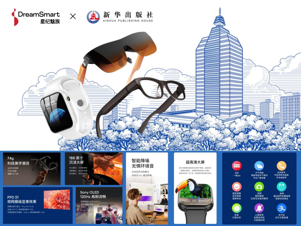 在文创品类布局上,新华出版社广泛整合多领域热门IP资源,以新华社文创为核心,纳入“王者荣耀”“黑神话・悟空” 等现象级游戏IP,同时覆盖“遇见上海”城市文旅IP、“敦煌文化”传统文化IP,以及 “混知”“淘米”等知识科普与经典动画IP。此外,出版社与星纪智讯推出的联名智能眼镜Star View与 Astar Zen™智能手表系列,在“新次元 News”进行重点展陈及现场体验,以此为消费者打造“文化+科技”的创新视听交互范式,该系列产品配合国社优秀数字化内容,进一步优化了智能文创产品的沉浸式视觉化展示效果,让文创产品真正具备“可传播、可感受、可佩戴、可收藏”的多重属性。目前上海门店文创品类规模已超200种,能充分适配不同年龄、不同兴趣受众的选择偏好。