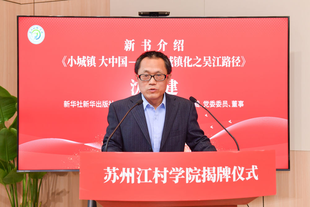 新华出版社副总裁、党委委员、董事沈建致辞发布《小城镇 大中国:新型城镇化之吴江路径》新书