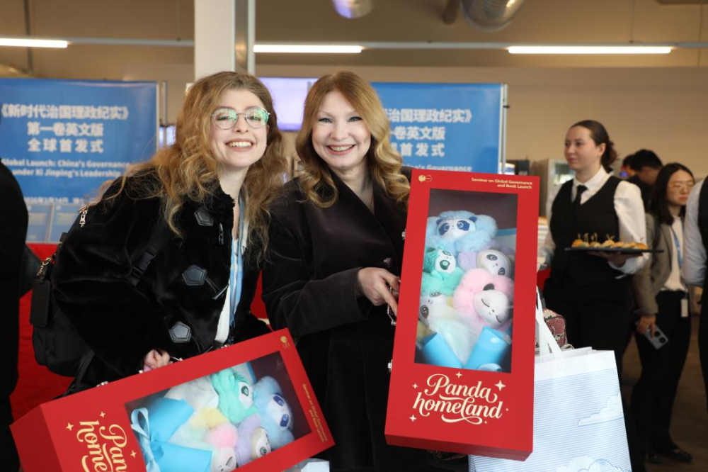 2月24日上午,由熊猫家园出品的“熊猫伙伴之花毛绒花束”(以下简称“熊猫花束”)在瑞士日内瓦万国宫亮相,作为全球治理研讨会活动伴手礼,吸引了来自联合国机构和国际组织的代表、多国驻联合国使节及智库、工商界人士等约200位嘉宾的关注和喜爱。