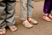 冬天里留守儿童还是光脚上学