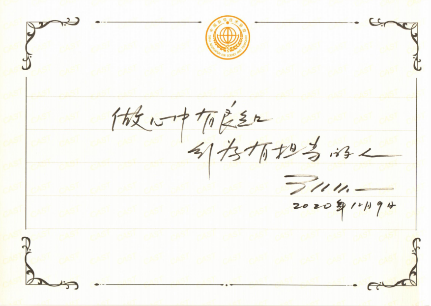 2020年末,中央宣传部、中国科协、科技部、中国科学院、中国工程院、国防科工局等6部门在北京向全社会发布2020年“最美科技工作者”先进事迹。“最美科技工作者”学习宣传活动自2018年以来已连续举办3届,每年选树10位先进个人。王行环、李玉、陈厚群、胡郁、李东、陈亮、仝小林、次旦央吉、程相文、郝吉明荣获2020年度“最美科技工作者”称号。以上为王行环的寄语。