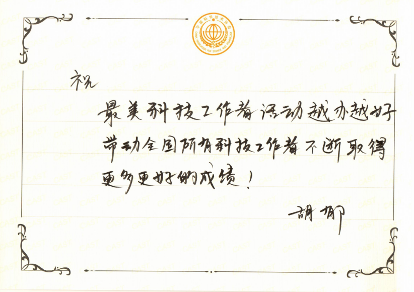 2020年末,中央宣传部、中国科协、科技部、中国科学院、中国工程院、国防科工局等6部门在北京向全社会发布2020年“最美科技工作者”先进事迹。“最美科技工作者”学习宣传活动自2018年以来已连续举办3届,每年选树10位先进个人。王行环、李玉、陈厚群、胡郁、李东、陈亮、仝小林、次旦央吉、程相文、郝吉明荣获2020年度“最美科技工作者”称号。以上为胡郁的寄语。