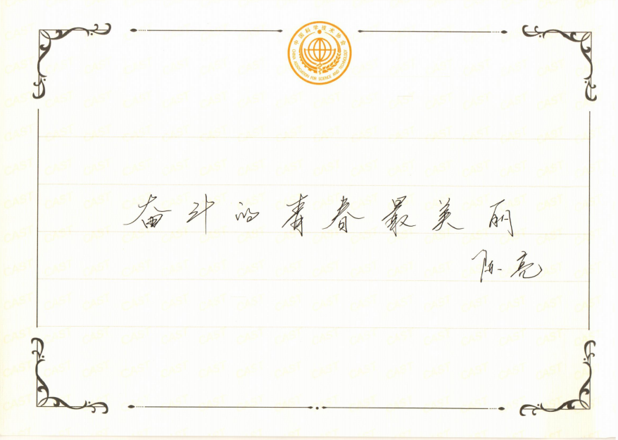 2020年末,中央宣传部、中国科协、科技部、中国科学院、中国工程院、国防科工局等6部门在北京向全社会发布2020年“最美科技工作者”先进事迹。“最美科技工作者”学习宣传活动自2018年以来已连续举办3届,每年选树10位先进个人。王行环、李玉、陈厚群、胡郁、李东、陈亮、仝小林、次旦央吉、程相文、郝吉明荣获2020年度“最美科技工作者”称号。以上为陈亮的寄语。