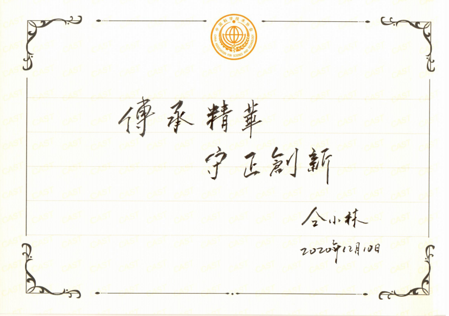 2020年末,中央宣传部、中国科协、科技部、中国科学院、中国工程院、国防科工局等6部门在北京向全社会发布2020年“最美科技工作者”先进事迹。“最美科技工作者”学习宣传活动自2018年以来已连续举办3届,每年选树10位先进个人。王行环、李玉、陈厚群、胡郁、李东、陈亮、仝小林、次旦央吉、程相文、郝吉明荣获2020年度“最美科技工作者”称号。以上为仝小林的寄语。