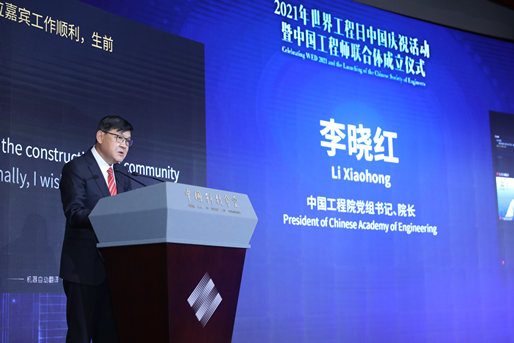 3月18日,2021年世界工程日中国庆祝活动暨中国工程师联合体成立仪式上,中国工程院院长李晓红致辞。新华网付琳摄