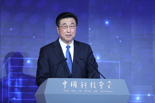 3月18日,2021年世界工程日中国庆祝活动暨中国工程师联合体成立仪式上,中国科协书记处书记宋军介绍到场来宾。新华网付琳摄