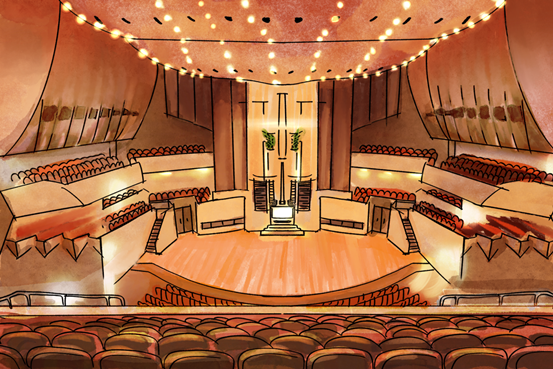 此外,在音乐厅中会利用哈斯效应将声像拉近,提升舞台效果。主音箱一般设置在舞台正中央的上方位置集中供声,这使得观众所感受到的声源是来自于空中而不是舞台。通常会在舞台两侧增设一对双声道音箱,这对音箱距离听众比较近且更靠近舞台,观众会先听到这对音箱的声音。而处于距离较远的主音箱就只起到加强的作用,如此便能将声像拉近舞台和听众,让听众的视觉和听觉达到统一。