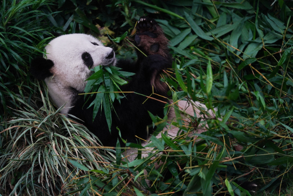 进一步研究发现,为了适应低营养素的竹子,大熊猫采取了多吃、多消化、少运动等策略,所以我们看到的大熊猫都是圆滚滚、慢悠悠的。大熊猫首先采取的策略是大量觅食,而且还会“挑食”,并不是什么竹子都吃,它们往往会选择那些营养最优的竹子种类,从竹笋、竹叶及基径适中的竹茎中最大限度地获取足够的营养和能量。