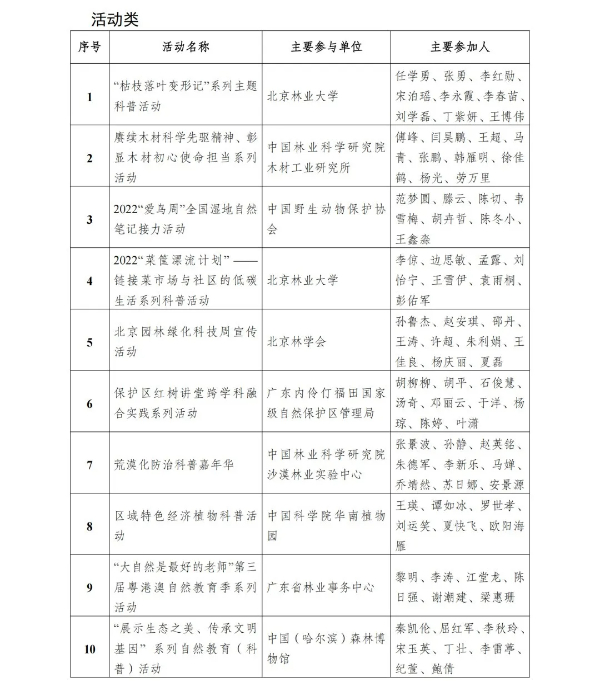 中国林学会于2023年8月启动了第十二届梁希科普奖评选工作。评选期间,共收到149项符合相关要求的申报材料,包括科普作品类75项、科普活动类47项、科普人物类27项。