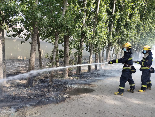 图三:2023年5月2日,河南省济源市消防救援支队济渎路特勤站在处置飞絮引发的火情(来源:新华社)