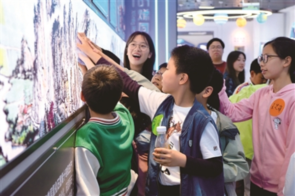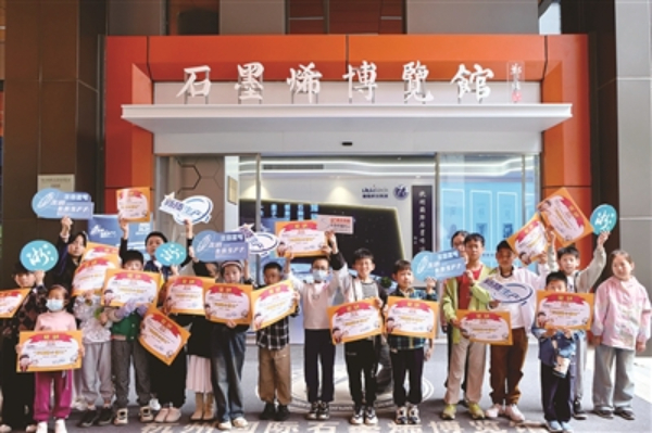 讲解员告诉大家,石墨烯有非常丰富的应用场景,比如石墨烯气凝胶吸附海上原油的能力,石墨烯基碳纤维、散热膜可用于航空航天领域,石墨烯复合纤维可极大优化人们日常生活……“我们用石墨烯电池给手机充满电,只需要几秒钟就可以把电充满。”孩子们在阵阵惊叹中,对石墨烯这个新材料和科技革新的前景充满了好奇和憧憬。