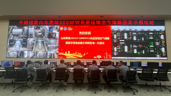 4月30日,具有完全自主知识产权的山东肥城国际首套300MW先进压缩空气储能国家示范电站首次并网发电一次成功。该电站采用中国科学院工程热物理研究所自主研发的先进压缩空气储能技术,由中储国能(北京)技术有限公司投资建设,是目前国际上规模最大、效率最高、性能最优、成本最低的新型压缩空气储能电站。
