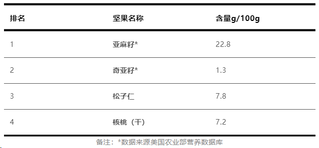 富含Omega-3脂肪酸的坚果很少,这4种坚果含量还算可以,其中亚麻籽含量最高,但得注意一定要炒熟了才能吃,因为生亚麻籽含有氰苷,直接生吃可能会中毒。