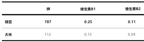 夏季出汗多,一些水溶性维生素、钾等矿物质容易随着汗液流失。绿豆的维生素 B1、B2 和钾含量丰富,是解暑的有利成分(电解质代谢紊乱会导致中暑)。