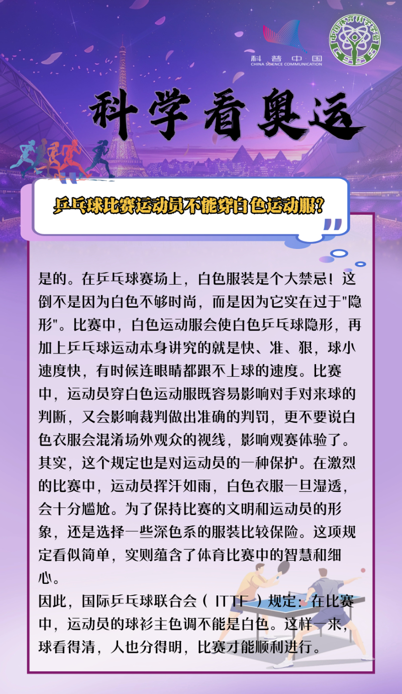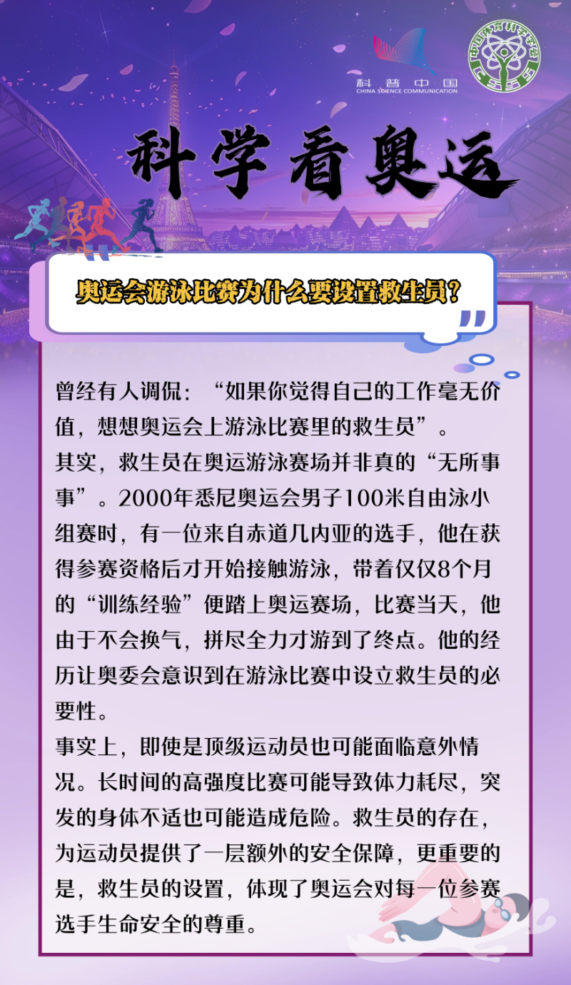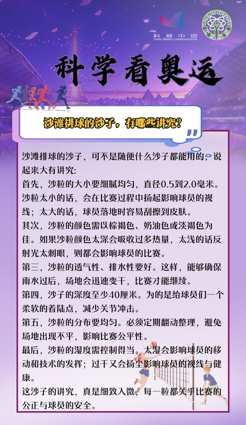 法国巴黎举办的第33届夏季奥运会已落下帷幕,在欣赏精彩赛事的同时,你是否也好奇过以下这些问题,比如:游泳比赛为什么要设置救生员?乒乓球比赛运动员不能穿白色运动服?沙滩排球的沙子是普通的沙子吗?我们一起揭开奥运赛场上的科学奥秘,了解更多奥运冷知识。