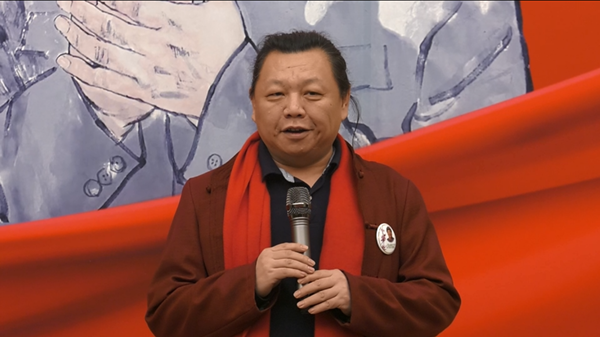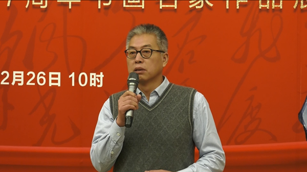 12月26日, 永远的怀念——纪念毛主席诞辰127周年书画展在京开幕。图为策展人曹玉文发言。