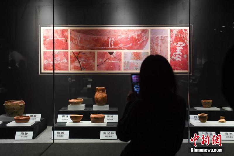 1月15日,“万年浙江,从这里开始——上山文化考古成果展”在浙江杭州开展,展出的108件遗物包括浦江上山遗址、义乌桥头遗址、仙居下汤遗址出土的陶器和石器,囊括上山文化早、中、晚三个阶段。其中上山遗址出土器物年代测定最早能追溯到11000年前。中新社记者 王刚 摄