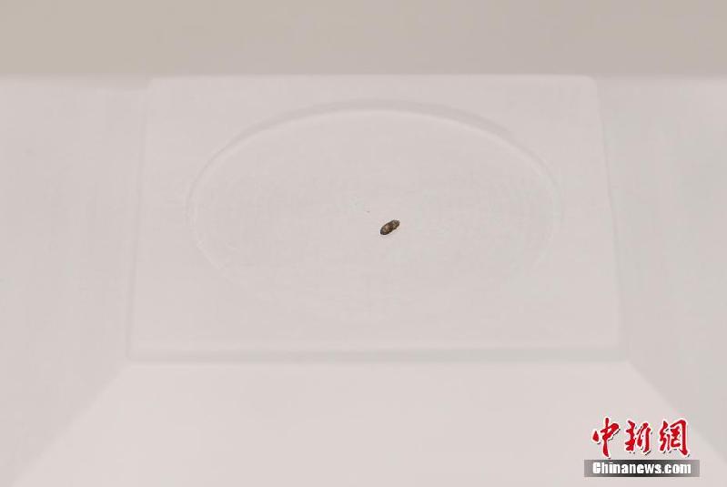 1月15日,浙江杭州,一粒出土于上山遗址的稻谷亮相浙江省博物馆。中新社记者 王刚 摄