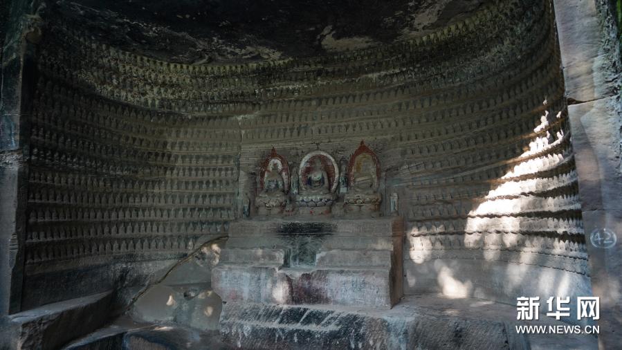 这是在四川省资阳市安岳县圆觉洞景区拍摄的石窟造像(2020年11月11日摄)。新华社记者 王曦 摄