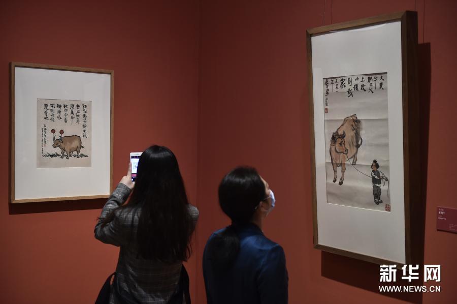 2月12日,观众在中国美术馆里参观“美在耕耘——中国美术馆新年展”。新华社记者 鲁鹏 摄
