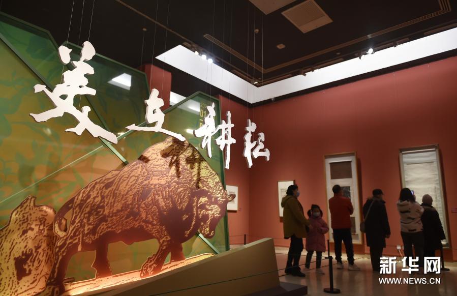 2月12日,观众在中国美术馆里参观“美在耕耘——中国美术馆新年展”。新华社记者 鲁鹏 摄