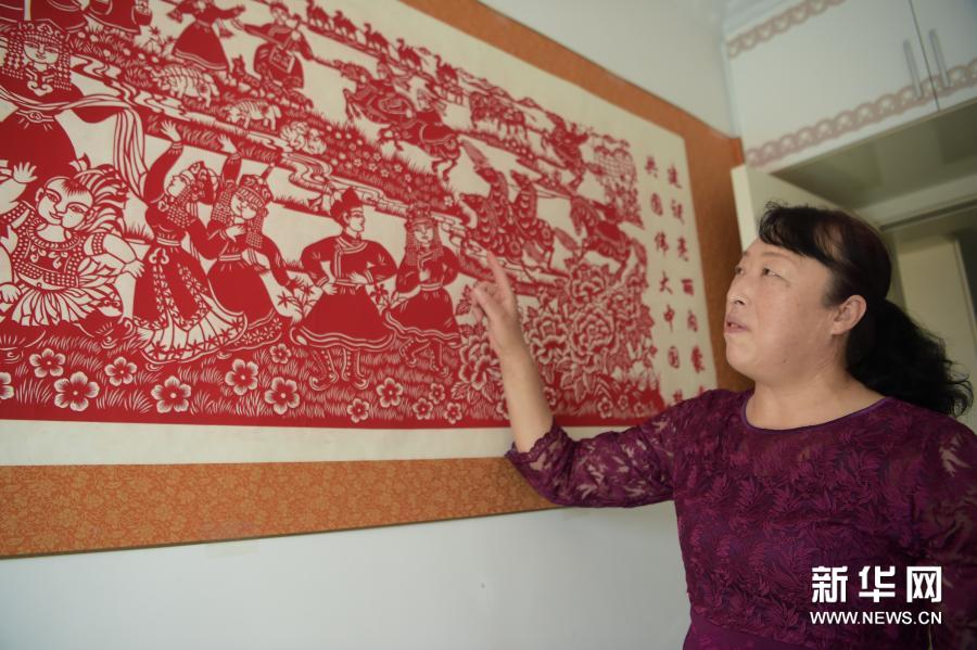 2月21日,在乌海市海南区新桥花园,李华在展示剪纸作品。新华社记者 李志鹏 摄
