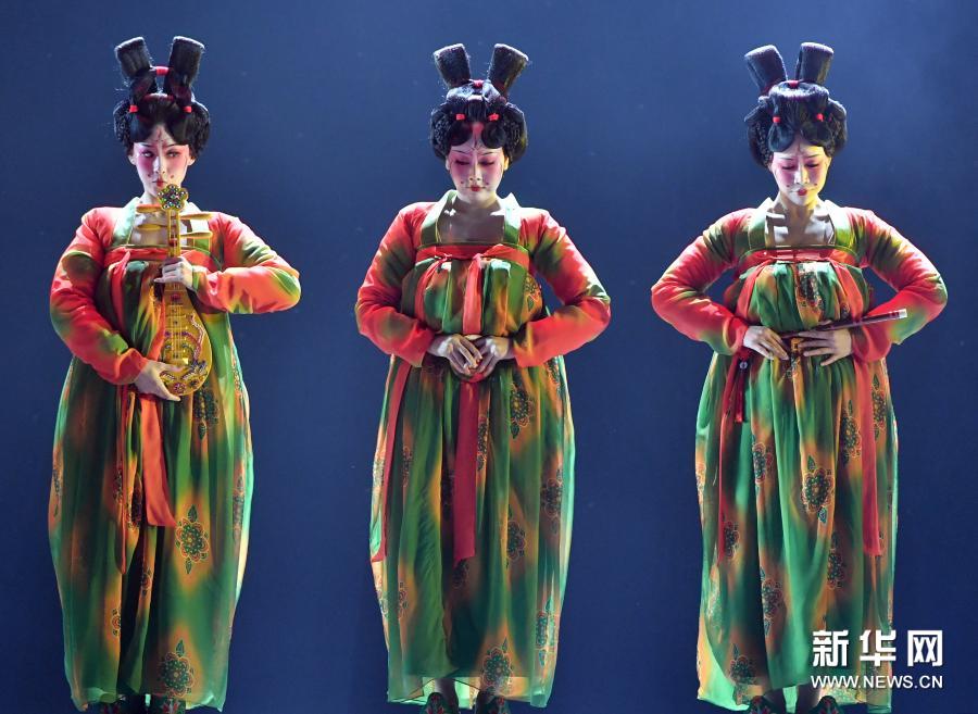演员在第十二届中国舞蹈“荷花奖”古典舞终评演出上表演《唐宫夜宴》(2020年10月16日摄)。新华社记者李嘉南摄