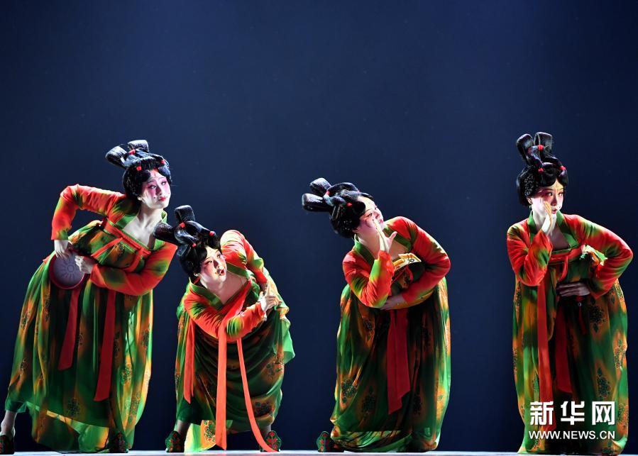 演员在第十二届中国舞蹈“荷花奖”古典舞终评演出上表演《唐宫夜宴》(2020年10月16日摄)。新华社记者李嘉南摄