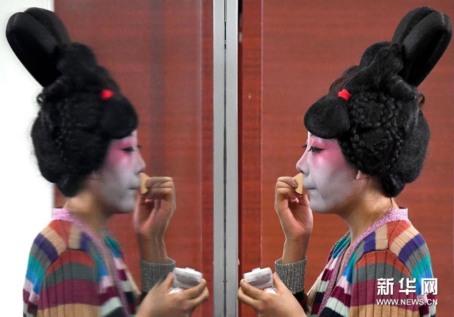 郑州歌舞剧院的演员在化装(2月20日摄)。新华社记者李嘉南摄