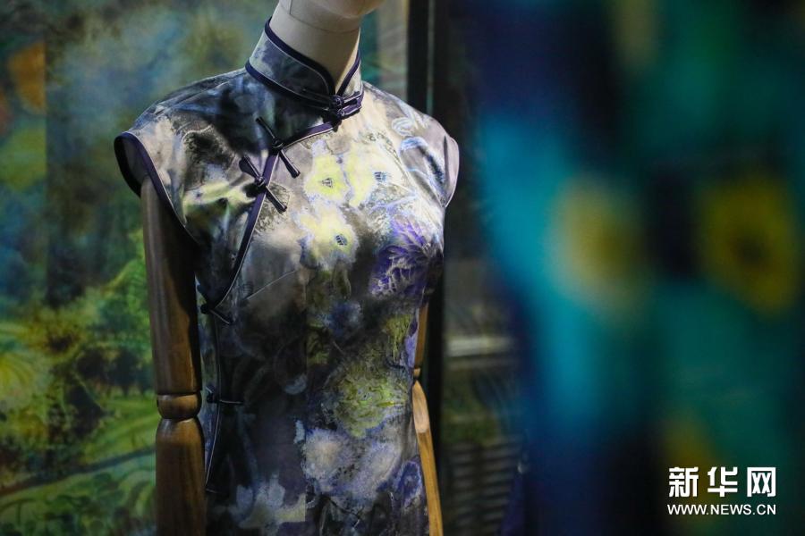 这是3月9日在兰州交通大学染缬艺术研究所拍摄的染缬工艺旗袍。新华社记者 马希平 摄