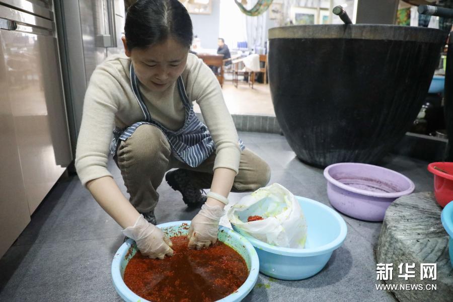 3月9日,在兰州交通大学染缬艺术研究所,工作人员用红花加工染料。新华社记者 马希平 摄