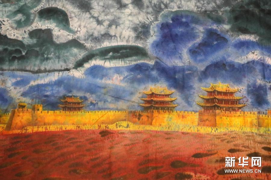 这是3月9日在兰州交通大学染缬艺术研究所拍摄的染缬布艺作品。新华社记者 马希平 摄