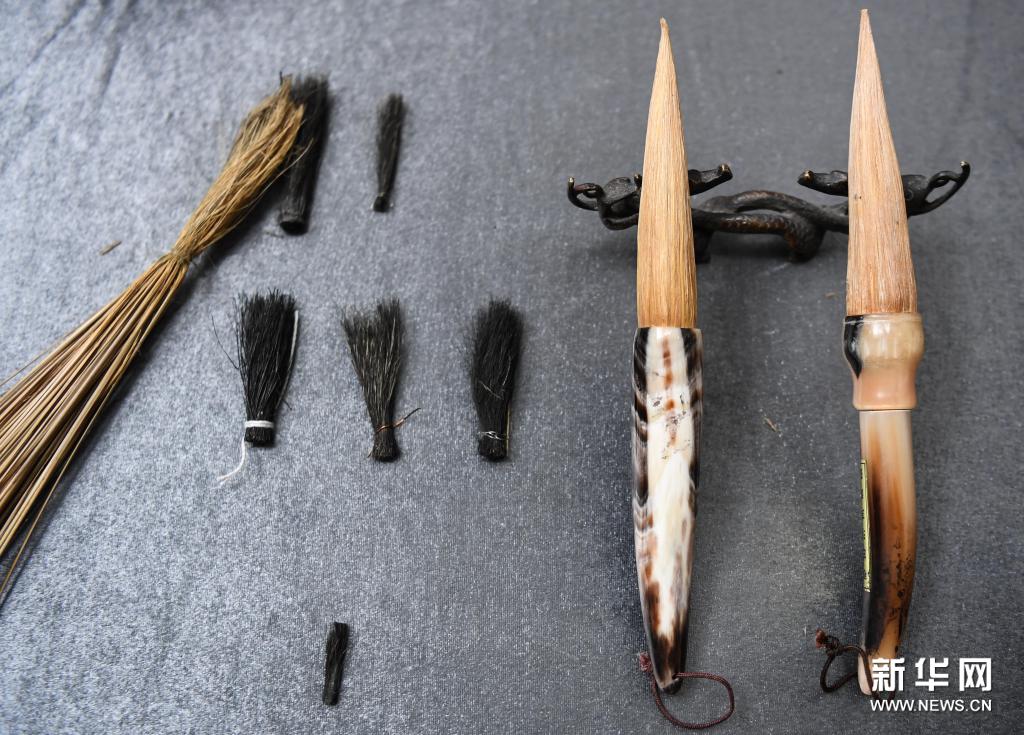 这是白沙茅龙笔成品及不同类型的笔头(3月24日摄)。新华社记者 邓华 摄