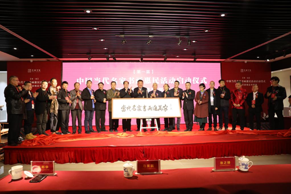 故宫博物院原副院长张之铸为本次活动题词“当代名家书画进万家”。活动现场,与会专家和书画家们共同为这幅题词揭幕。