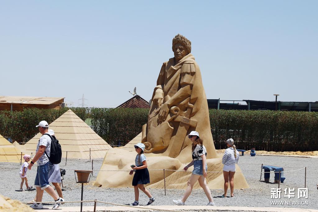 7月4日,游客在埃及红海省胡尔加达市的沙雕城参观。新华社发(艾哈迈德·戈马摄)