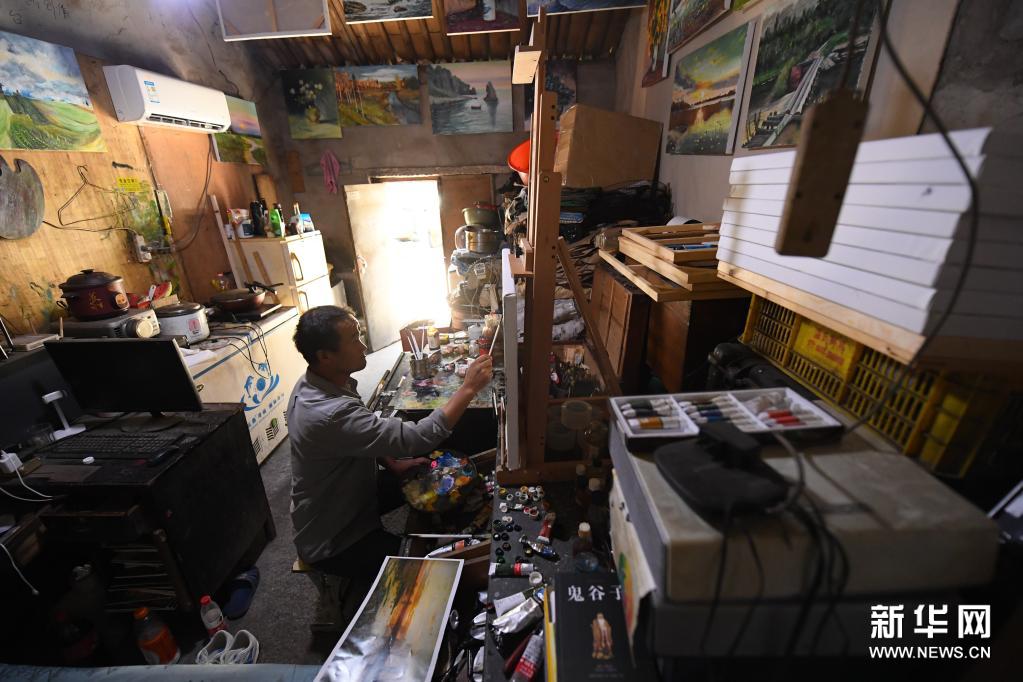7月6日,位光明在位于斗门街道东堰村的出租屋内画画。新华社记者 翁忻旸 摄