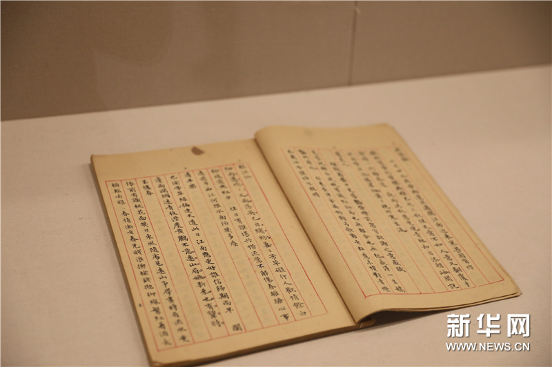 《念远词》,沈尹默,沈尹默长子沈令扬捐赠,毛笔手书原稿1册。《念远词》是1940年8月至1942年2月期间作者流寓重庆时所作,取晏殊词作《浣溪沙》中“满目山河空念远,落花风雨更伤春”句名之。词境开拓,慷慨悲壮。新华网 刘兰芳摄。