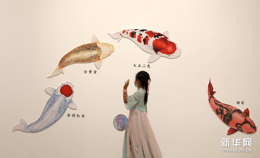 7月8日,一名小朋友在河北博物院观看“冀望福地 鱼水情深——河北传统鱼文化巡展”。近日,“冀望福地 鱼水情深——河北传统鱼文化巡展”在河北博物院展出,展览通过图文、视频、实物、活体等方式,展示金鱼的历史和文化,共展出金鱼5大品系130余尾,文创作品140余件,少儿美术作品200余幅。新华社发(梁子栋 摄)