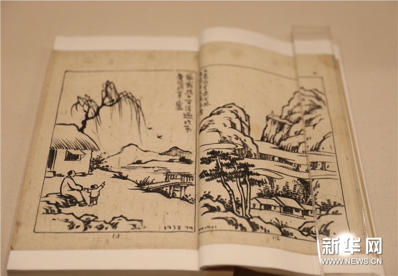 《子恺漫画全集》,丰子恺,徐调孚捐赠。丰子恺是中国抒情漫画的开创者,其画作用笔自然流畅,多取材于平凡的生活小事,直接描写生活中富有典型意义的现象,以简练、朴实的艺术语言表达画家真挚自然的情感。本稿有原画稿424幅,分古诗新画、儿童相、学生相、民间相、都市相等六辑。于1941年由开明书店出版。新华网 刘兰芳摄。