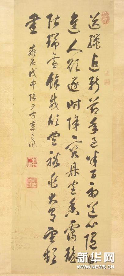 图为沈阳故宫馆藏的“胤禛草书戊申除夕守岁诗轴” 绢本。沈阳故宫博物馆提供