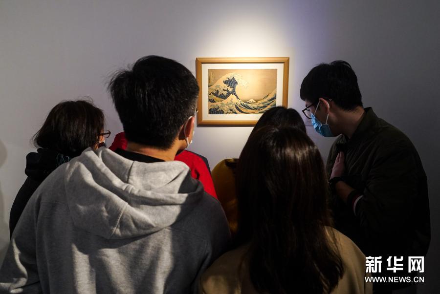 3月14日,观众在今日美术馆观赏《神奈川冲浪里》。新华社记者李京摄