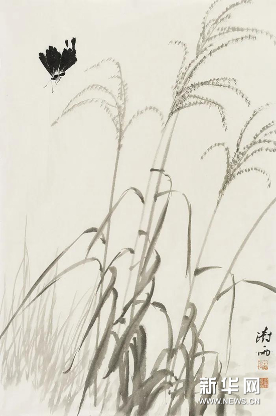 面对季节时令,面对自然造化的精妙变化,澍雨对于兰竹花草等传统题材与农植果蔬等日常物象,皆怀有朴素的钟爱。其画中笔意或有大写意的朴厚氤氲,或有兼工带写的精妙松灵,或有没骨花卉的醇秀灵透,在生拙与野逸之间,竹石苇荡、藤萝豆花皆得天然造化之灵韵,又得传统笔墨之神髓。当我们屏气凝神感悟其笔下每个花果生命的个性,可以感受到画家将花草鸟虫世界的精微个性与丰富结构展现出来,进而呈现创作者主体与自然世界之关系的过程。